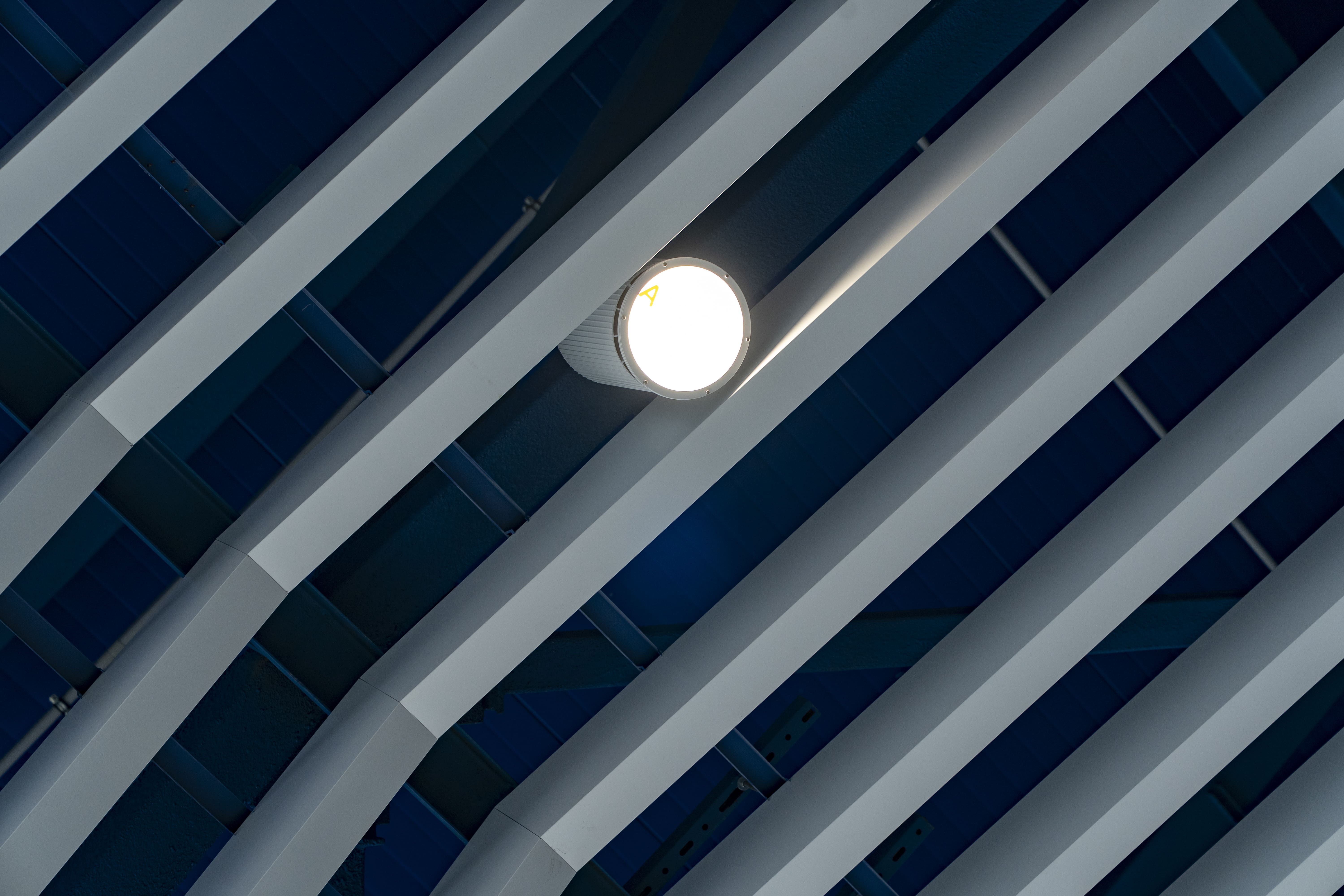 Для освещения этих зон были использованы светильники FEREKS ДСП, которые идеально вписались в интерьер. По техническому заданию светильники покрасили в цвет реечного потолка, что создало гармоничный визуальный эффект. Кроме того, была подготовлена специальная версия светильника с блоком аварийного питания (БАП).