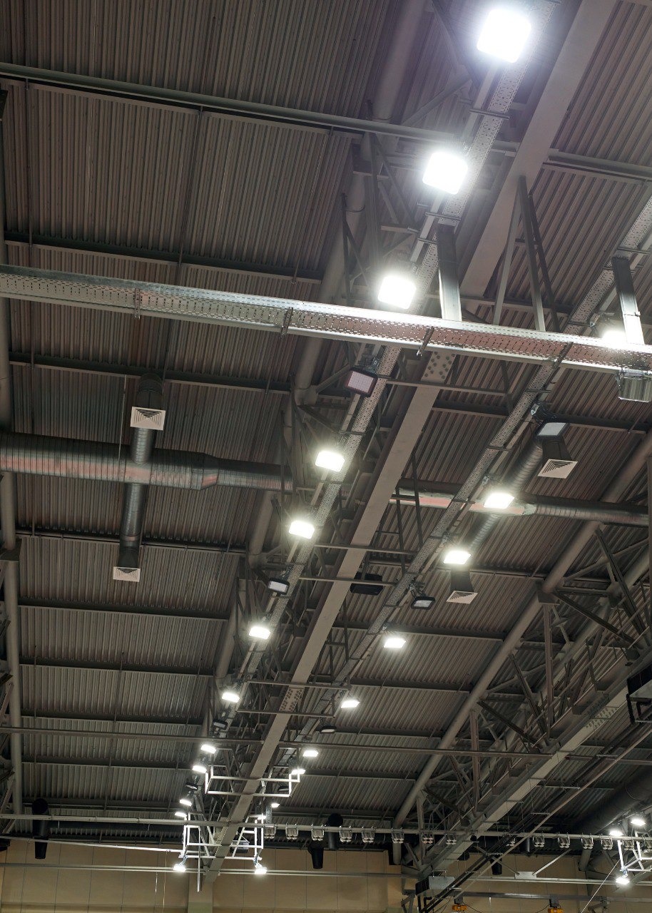 - ДПП 17-200-50-Д120: 200 Вт, 28 800 лм, Д, 5000K — для равномерной засветки Центра бадминтона.