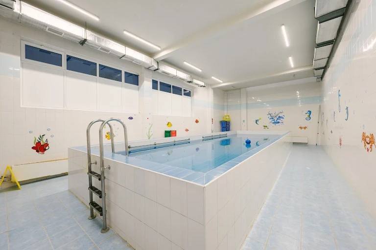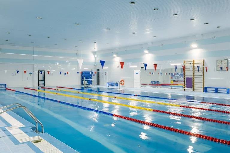 В спортивном зале установлены 49 светодиодных светильников WHEEL на 230 Вт. В помещении с бассейном используются 8 светильников FFL 230 Вт и 5 светильников ДСО 01-45-850-Д110. В помещении с малым бассейном установлены 8 светильников ДСО 01-60-840-Д110. Все это обеспечивает яркое и равномерное освещение, создавая идеальные условия для тренировок и соревнований.