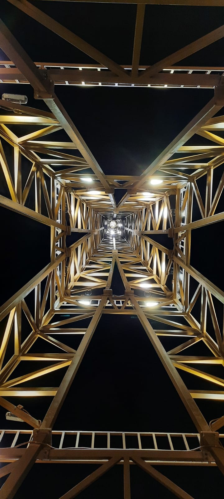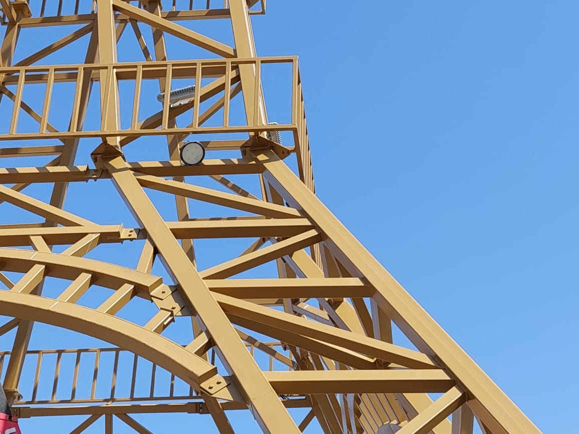 Подсветку главной достопримечательности новой торгово-развлекательной зоны организовали на разных уровнях: на высоте 6,5, 12 и 30 метров. Расположение светильников на конструктивных ярусах не разрывает силуэт башни и подчеркивает узнаваемость архитектурной формы. Всего для освещения 38-метрового строения применили 20 светодиодных прожекторов серии FHB и 20 светодиодных светильников серии FWL. Светильники выбрали с малым углом рассеивания света (15 градусов), чтобы добиться максимальной равномерности освещения.