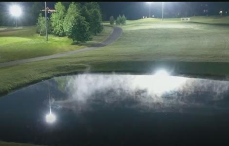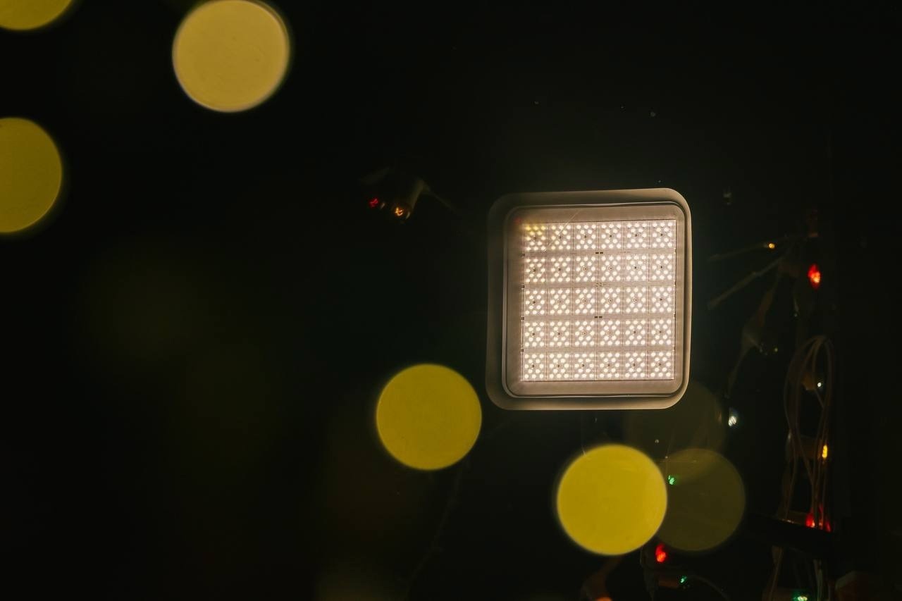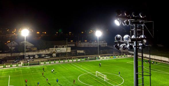 Для освещения катка по периметру установили 72 светодиодных светильника FFL. Они расположены на фермах высотой 4,5 м и обеспечивают равномерное освещение льда, не ослепляя катающихся.