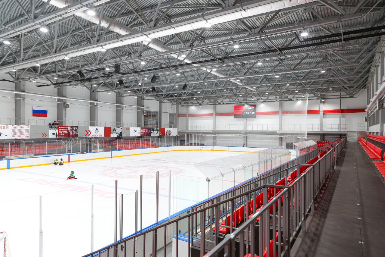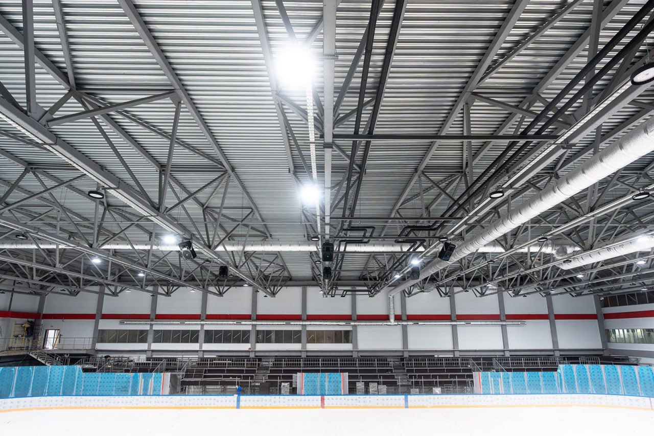 Общая площадь обновленного здания превышает 18,5 тыс. кв. м. Физкультурно-оздоровительный комплекс вмещает две ледовые арены и спортзал для подготовки хоккеистов. Обе арены и спортзал освещают подвесные светильники