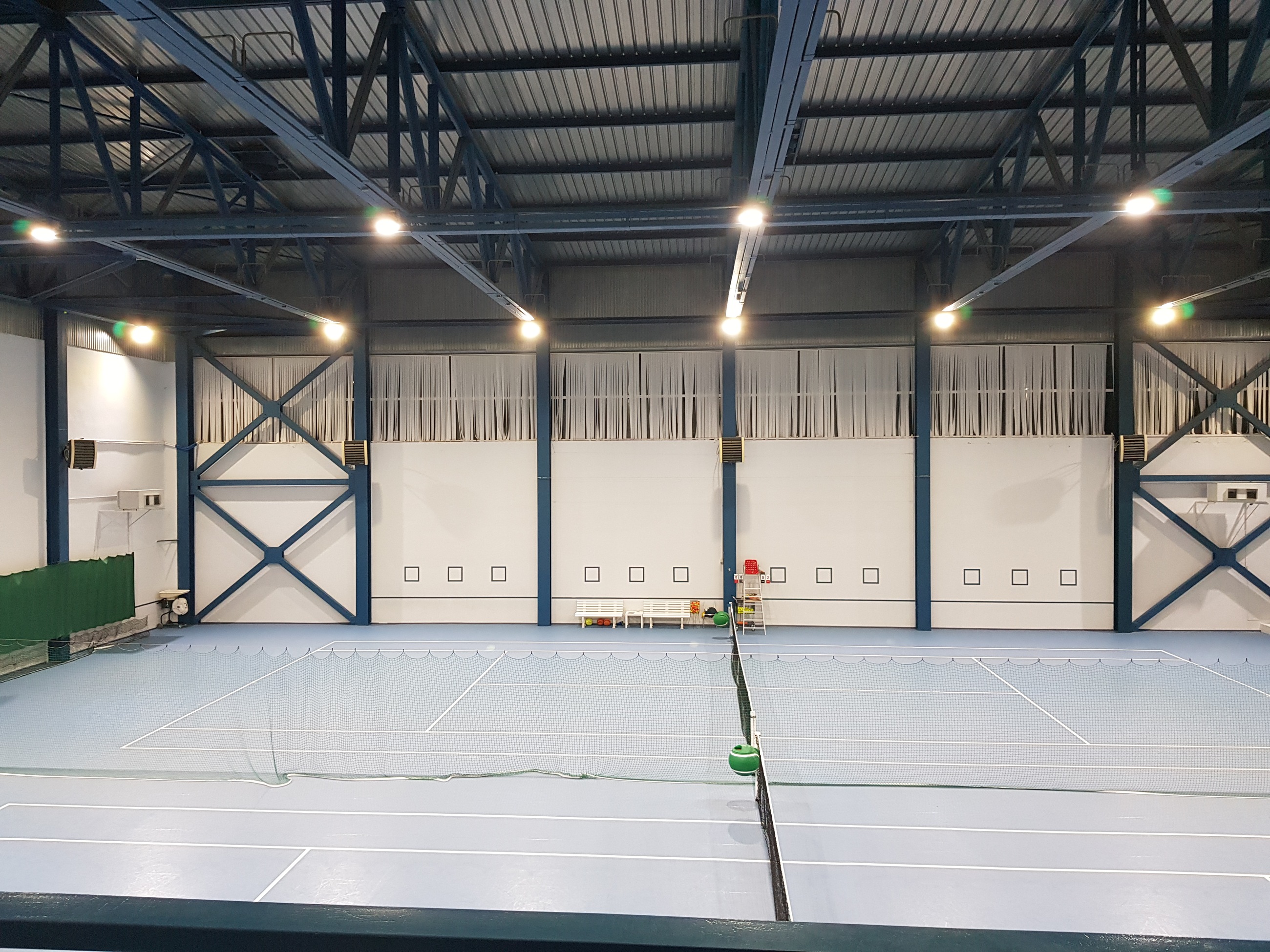 Для общего освещения корта были установлены экономичные и безопасные светодиодные прожектора серии FHB мощностью 230Вт в количестве 21 шт.