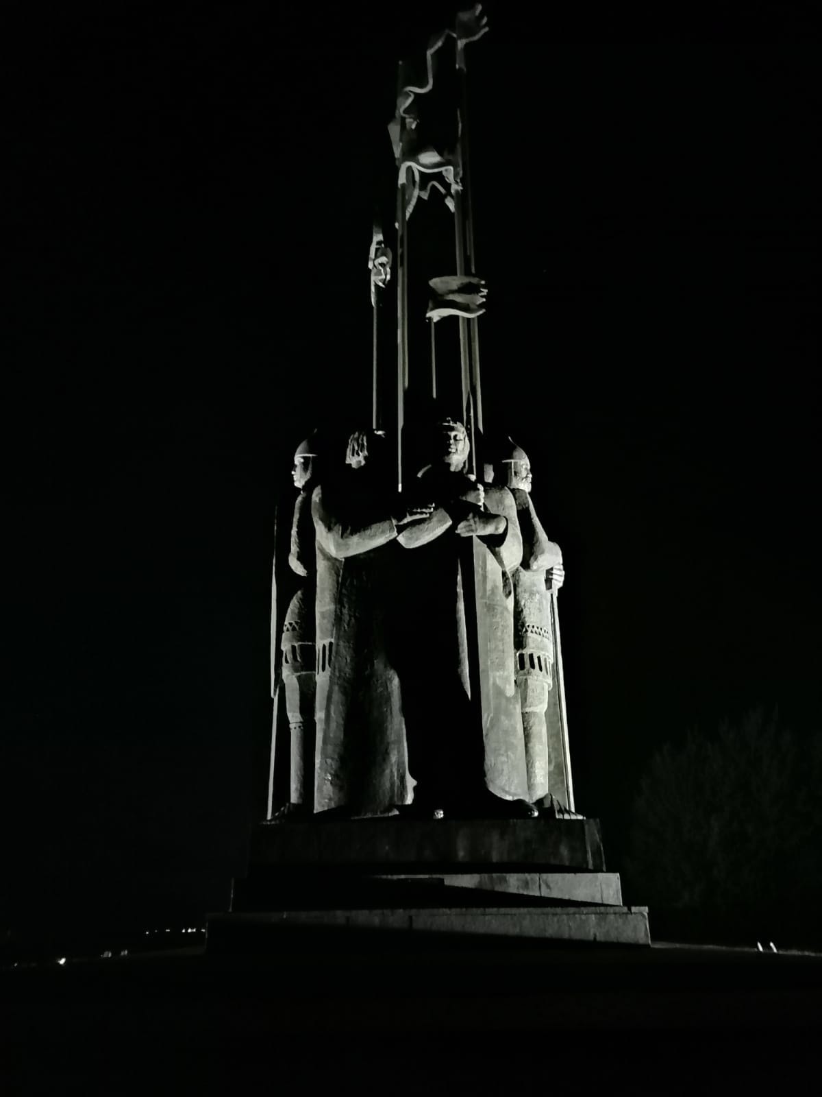 Архитектурная подсветка памятника Александру Невскому и его дружине "Ледовое побоище" под Псковом выполнена с применением высокоэффективных светодиодных прожекторов серии FHB мощностью 150 Вт.