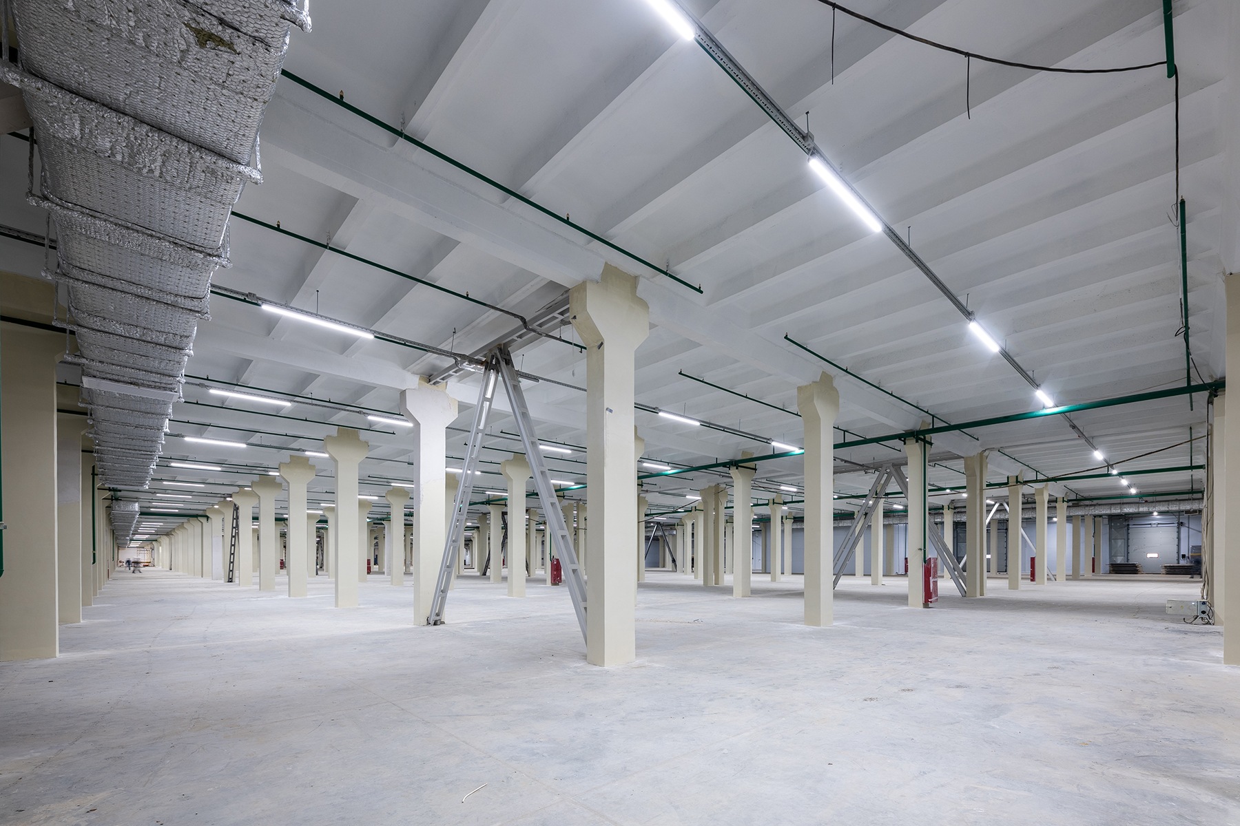 Общая площадь освещенной территории - 54 000 кв м. Высота потолков от 5,5 до 6м.